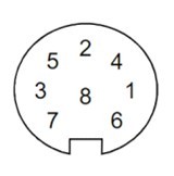 風速風向儀底部有一個8 腳防水插頭,用以通過屏蔽電纜線連接外部電源和通信接口。